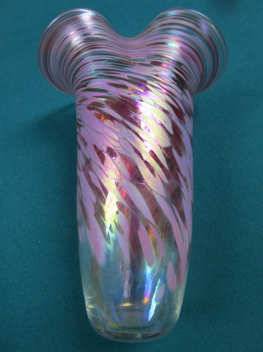 Rowena Vase in Mardi Gras by Rosetree Glass Studio in New Orleans, SIGNED USA