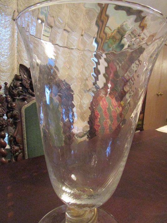 Paul's Italy Clear Optic Swirl Crystal Footed Vase Elegant Decor Large ^^^^