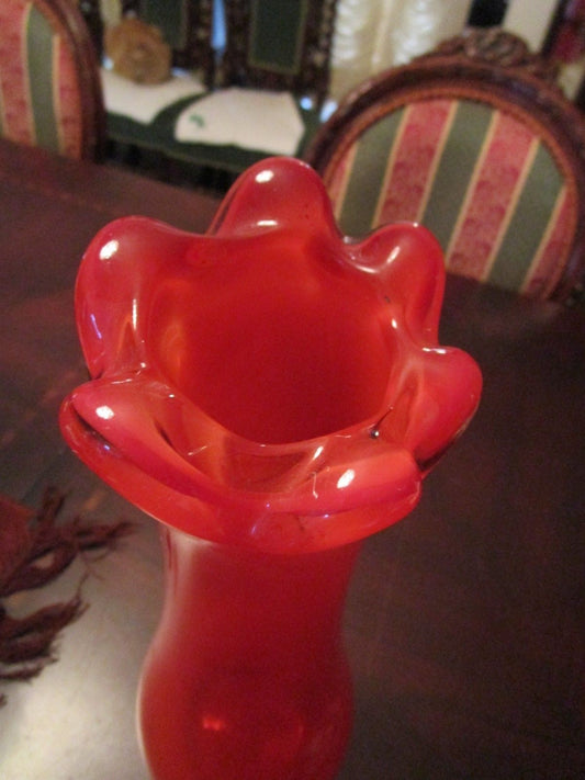Murano Red Orange Flower Vase 14 " Free Form Italy ^