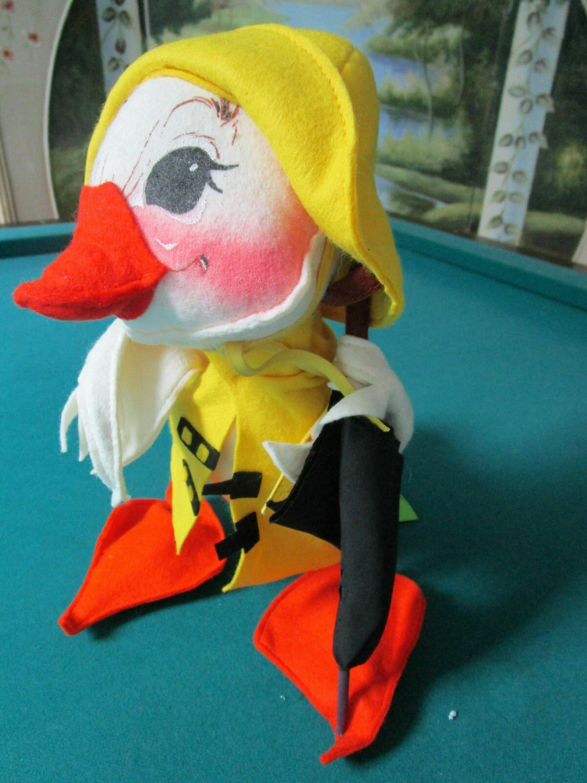 1- ANNALEE DUCK CLOTH FIGURINE IN THE RAIN WITH UMBRELLA 13" [annalee #3] Mint / Near Mint WITH TAGS