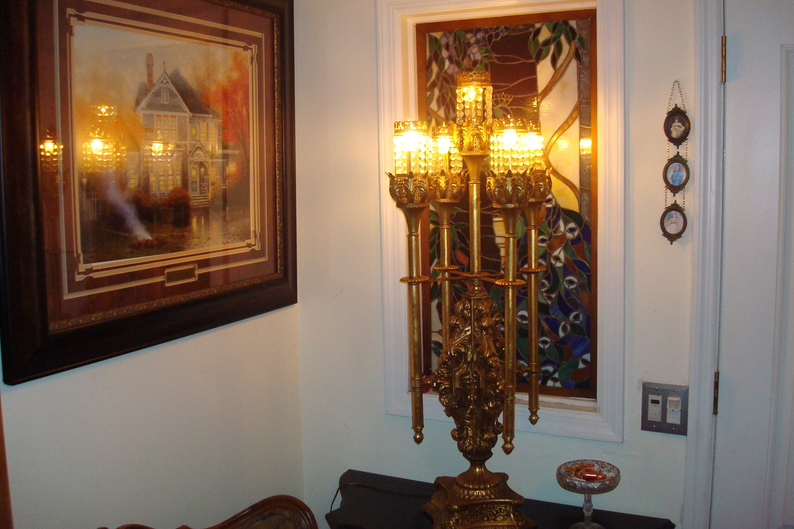 Banquet lamp 5 branches in metal, very mid- Century, crystal hex shaped teardrop