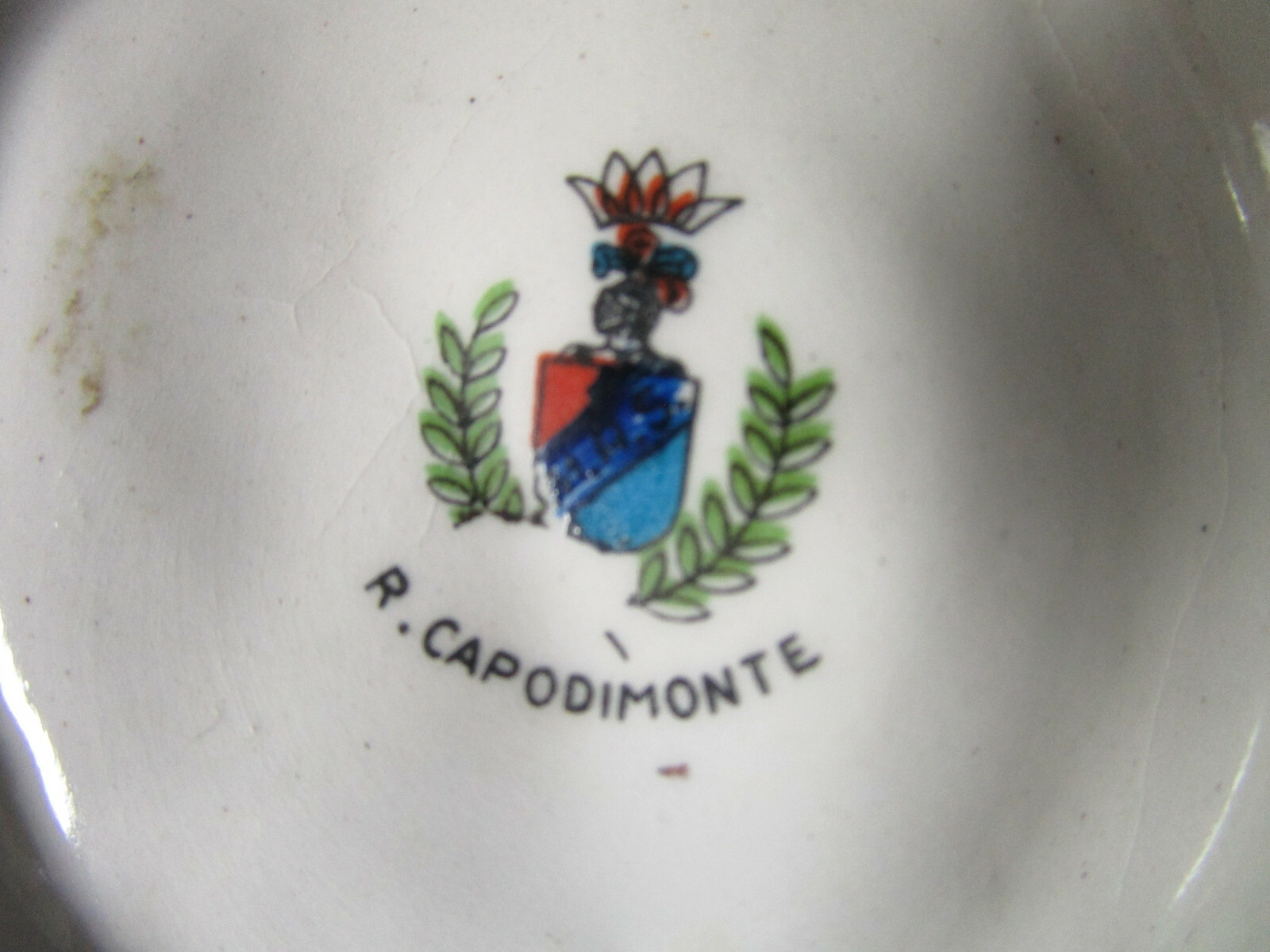 CAPODIMONTE ITALY MIDCENTURY PLATES, COVERED BOX CERAMIC BOUQUET FLOWERS PICK 1^