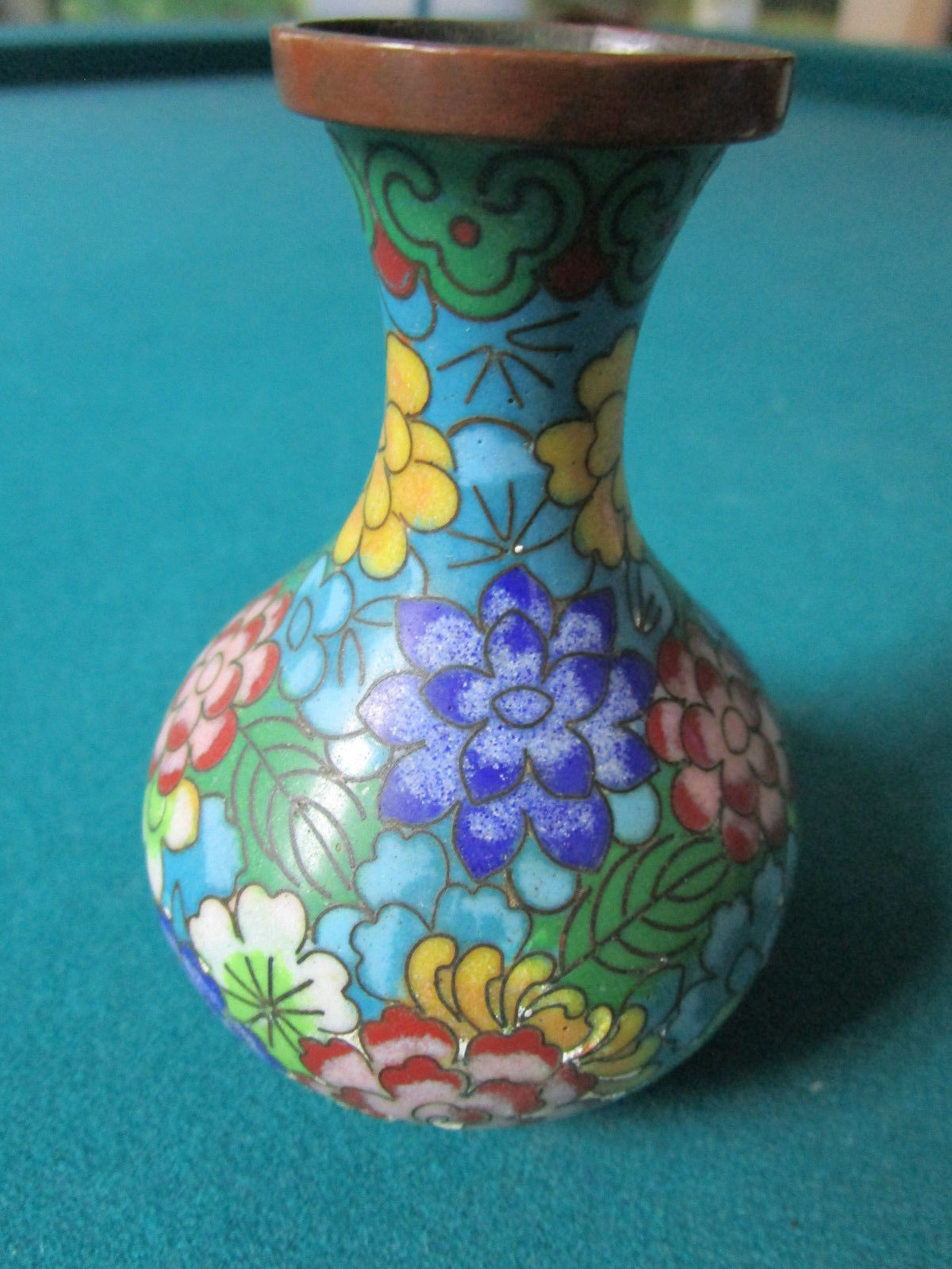 CHINESE CLOISONNE VASE MULTICOLOR FLOWERS 4" ORIG
