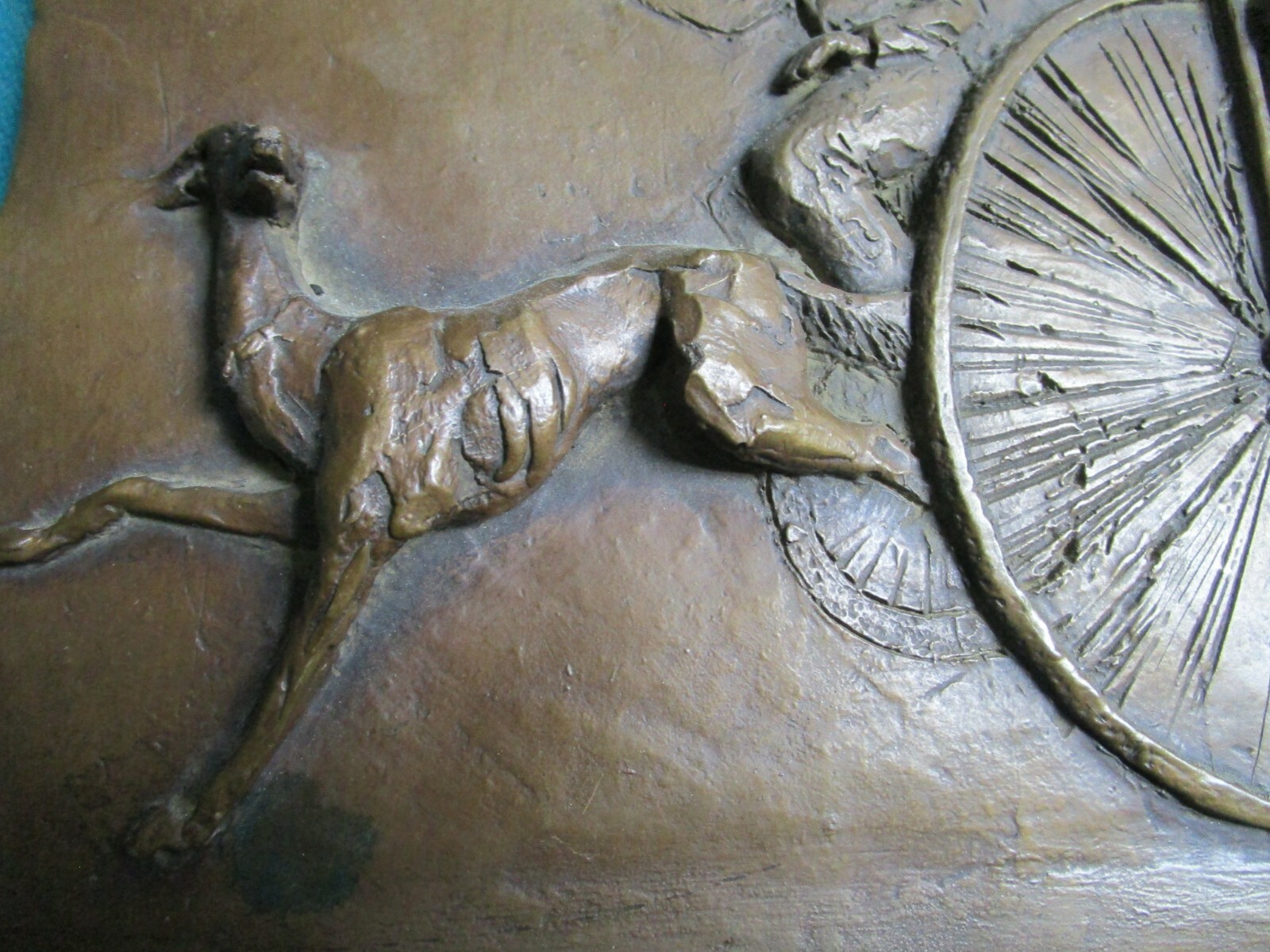 DP CERAMIC PLASTER PLAQUE CHILDREN PLAYING IN BICYCLE 9 1/2 x 8 1/2 B