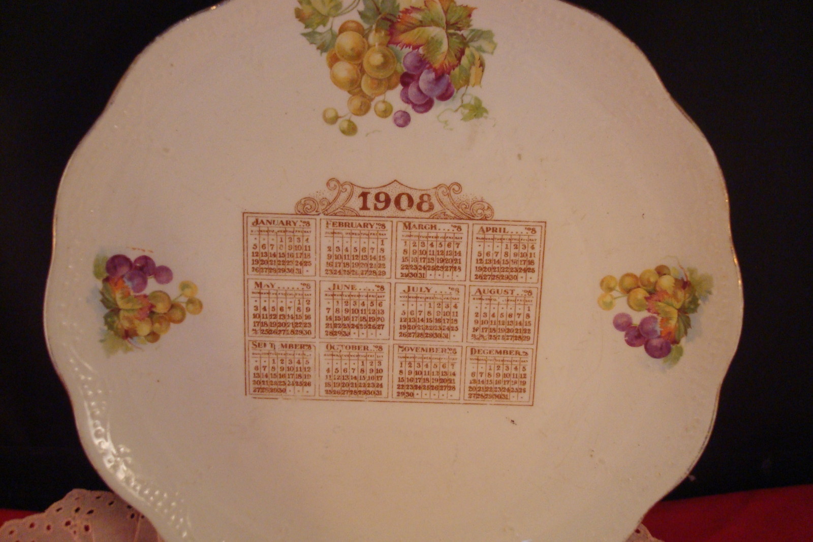Dresden China Calendar Plate 1908, 9 1/4"