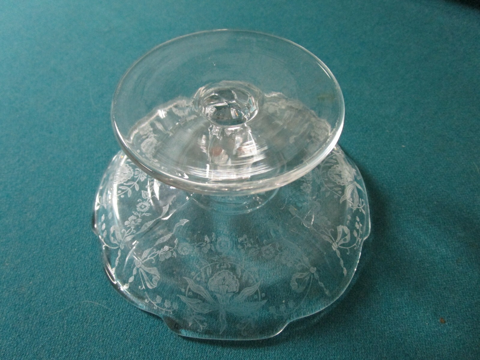 ELEGANT GLASS HEISEY FOOTED DISH /TIFFIN RUFFLED BORDER VASE PICK 1