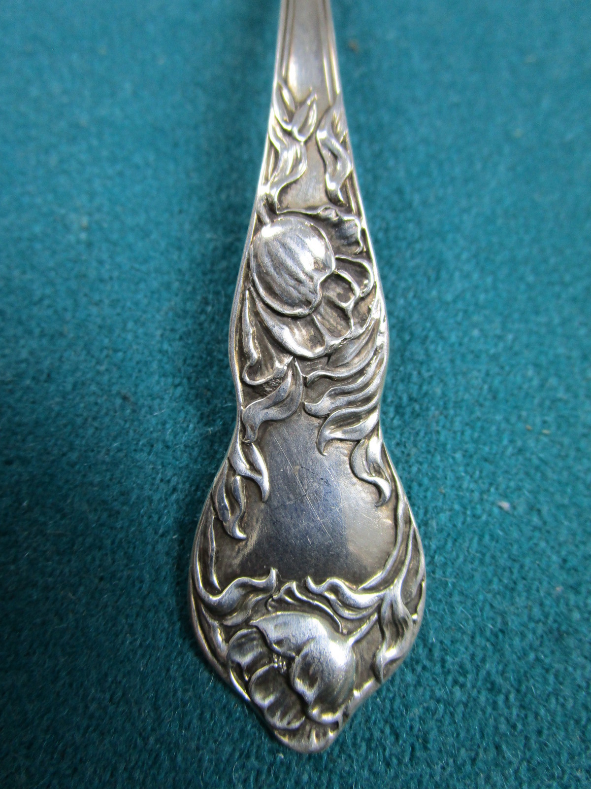 Gorhan? sterling gravy spoon flowers engraving 4 1/2" [silv]