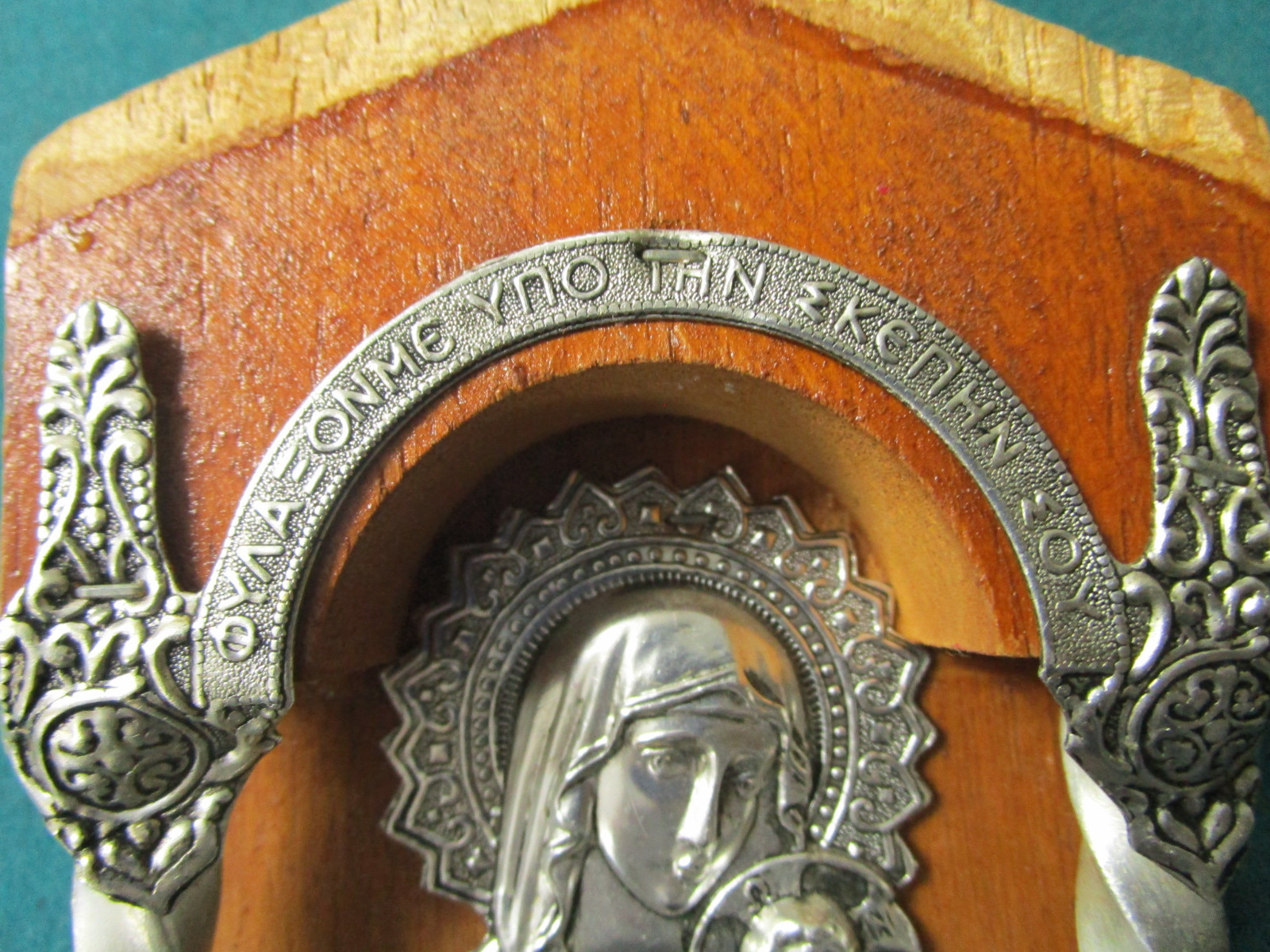 Greek Shrine Madonna Wood And Silverplate Repousse Decor ```