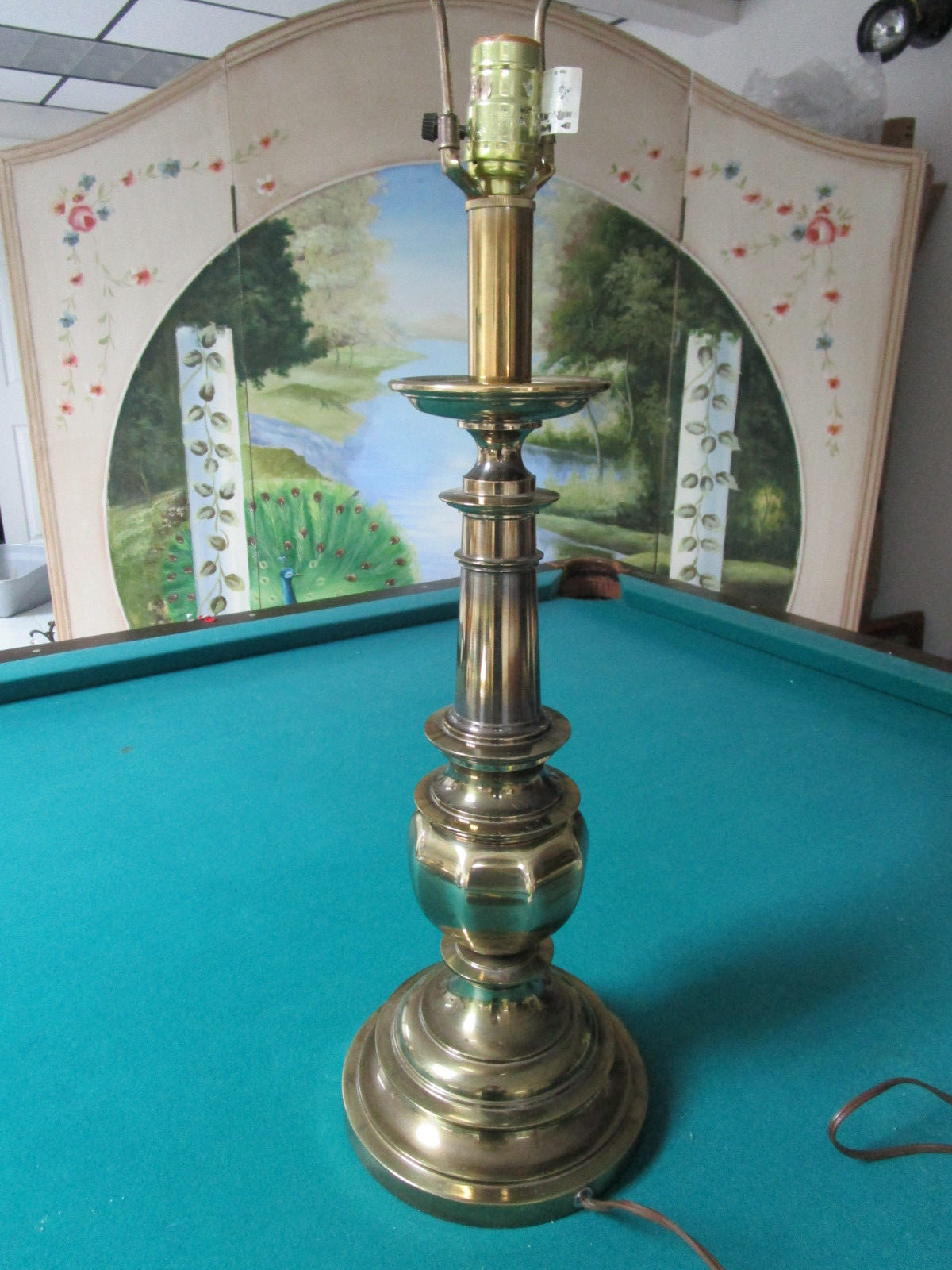 MID CENTURY BRASS TABLE LAMP ELECTRICAL 24" TALL BRONZE CORDED