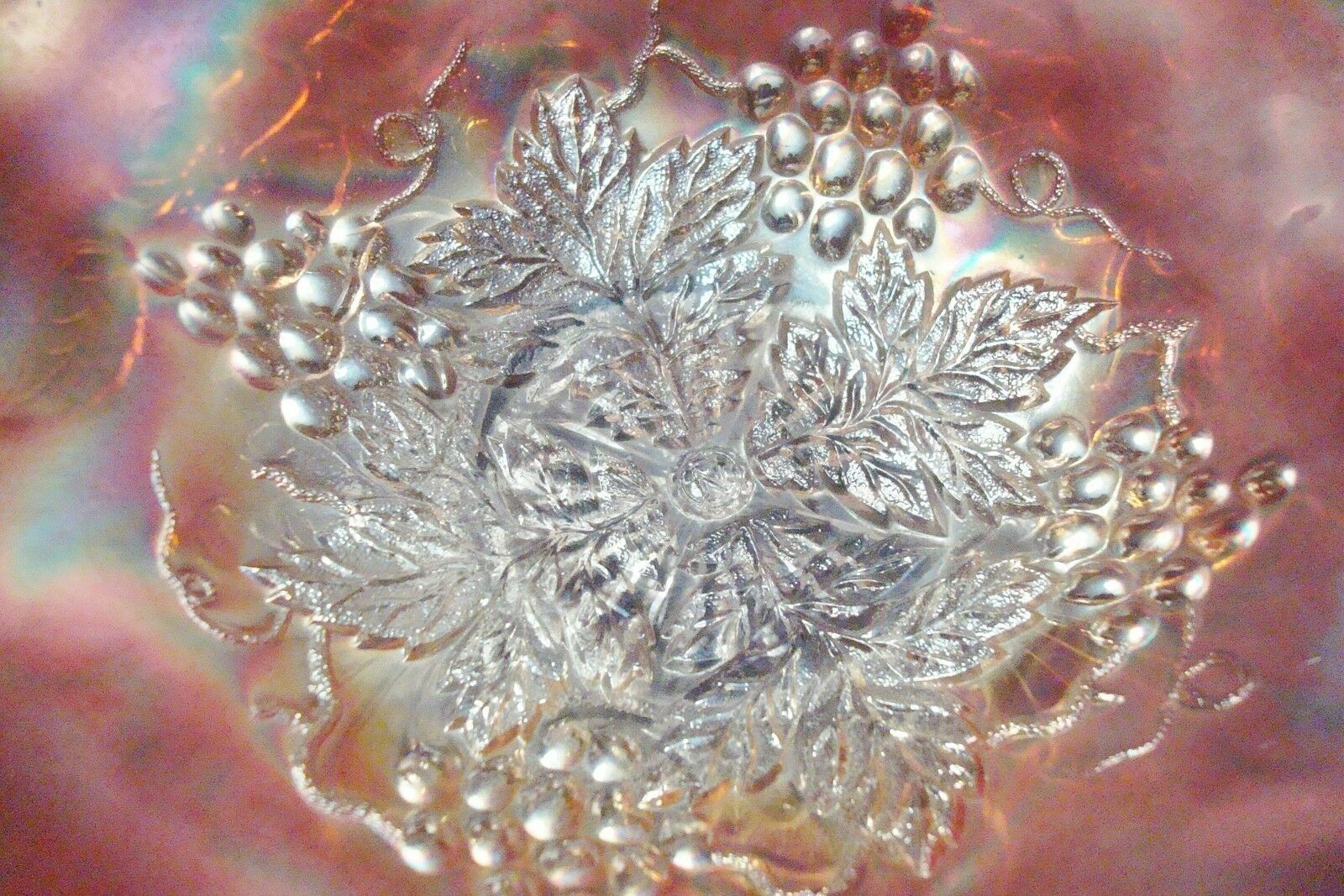 Glass Bowl - Grape & Leaves , ruffle borders, great condition [130C]