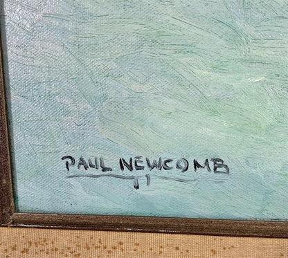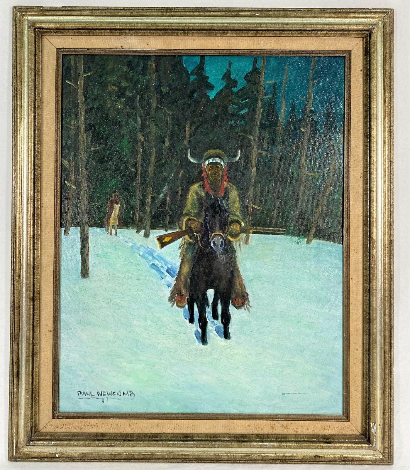 PAUL NEWCOMB AMERICAN INDIAN OIL PAINTED WARRIORS ON HORSE